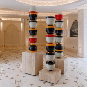 Drawing inspiration from Qatar’s traditional games, the centerpiece of this installation is the “Dama” – a board game similar to Checkers or Draughts, historically cherished by Qatari fishermen during their tranquil moments at sea.